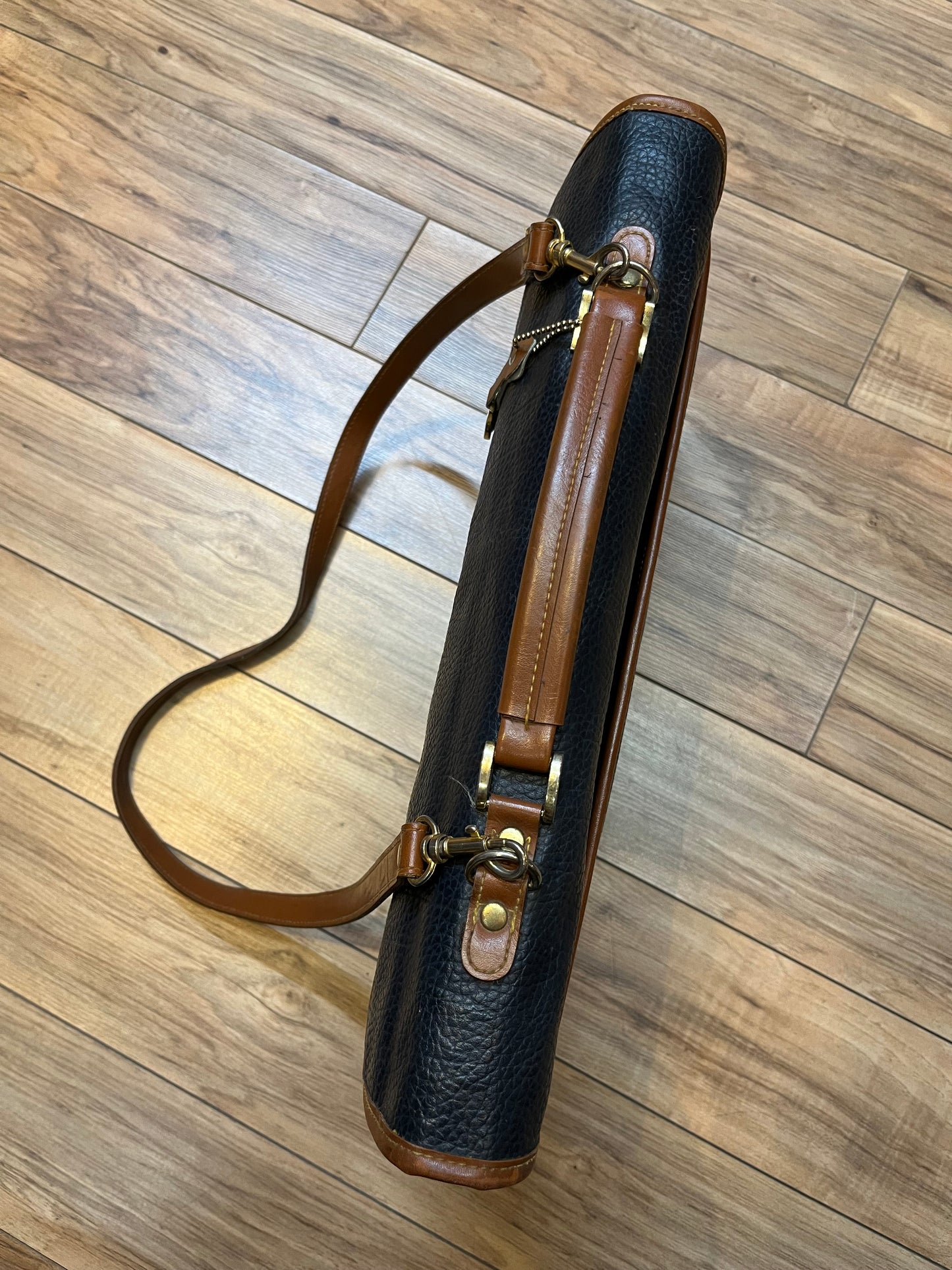 Bag is in great condition, with some minor scuffs and the dooney and burke leather emblem removed from the front of the briefcase.