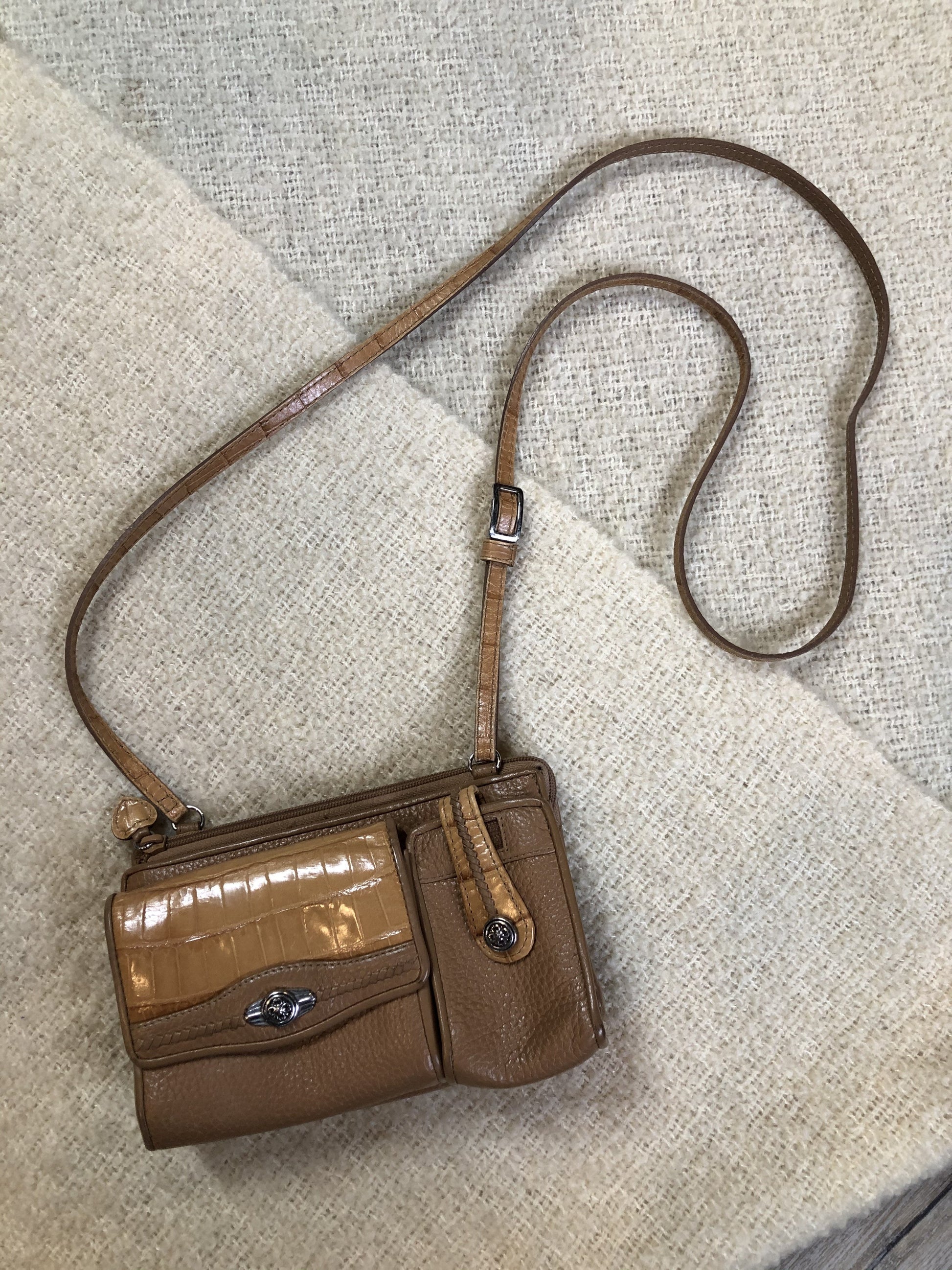 Light Brown Crossbody Bag with Croc-Embossed Details
