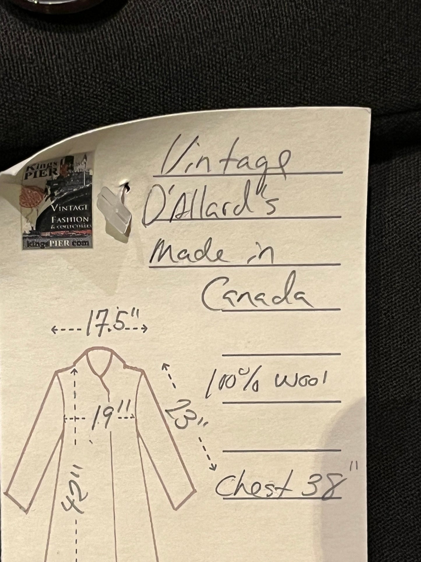 Vintage D'allaird's Brown Wool Coat, Made in Canada, Chest 38”