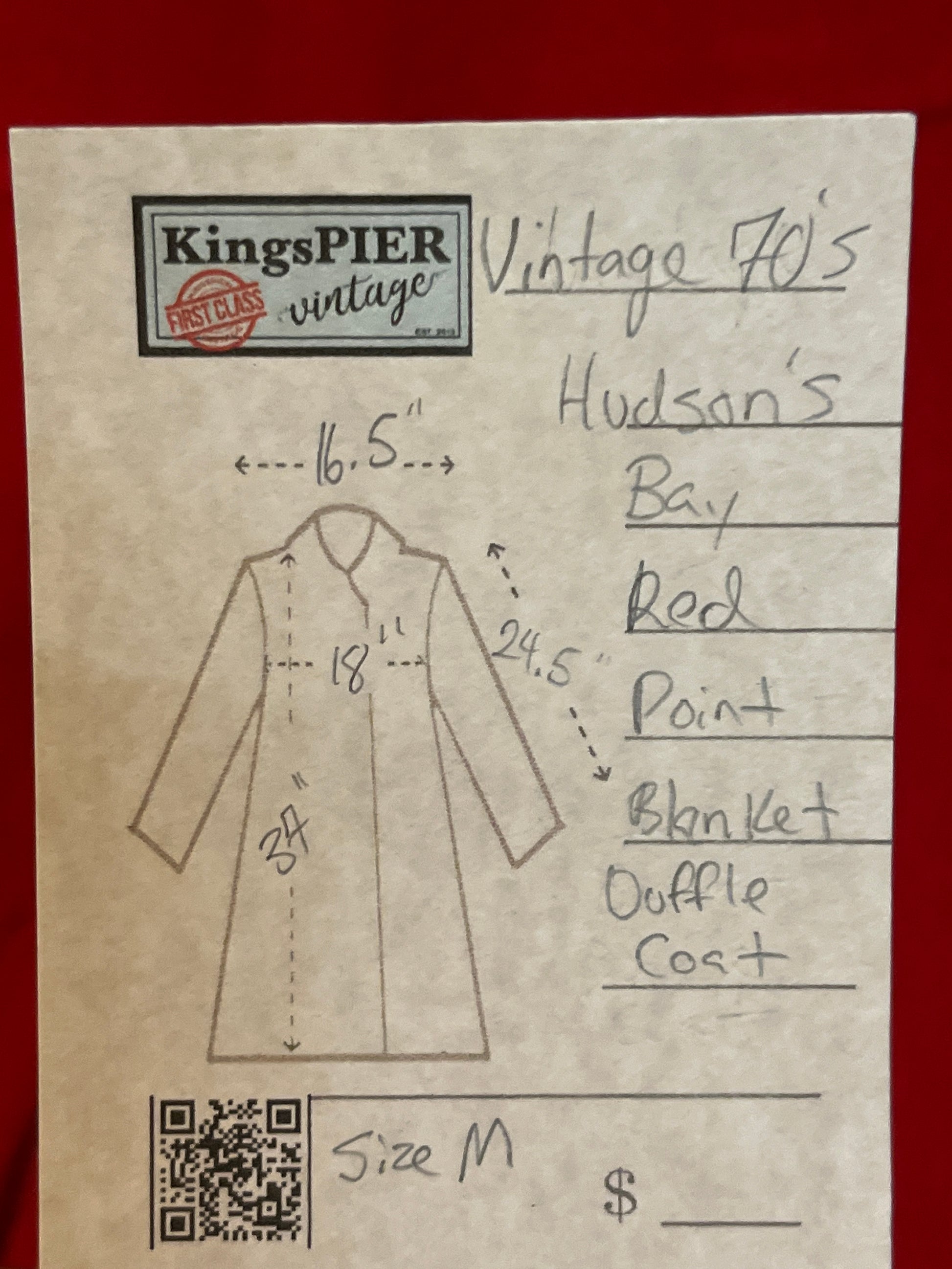 Vintage Hudson's Bay Company Red Point Blanket Duffle Coat with Hood, Made in Canada, NWOT Size Medium